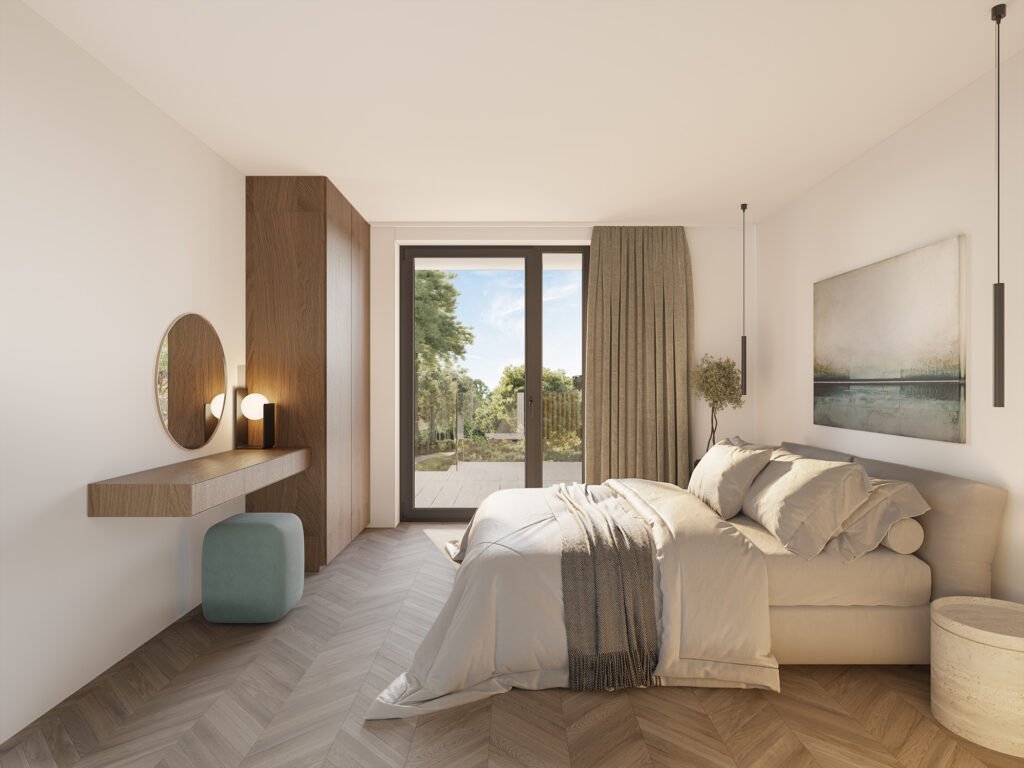 Residentie Notarispark in Kuurne biedt een concreet antwoord op deze trend. Alle appartementen worden gebouwd volgens de strengste energienormen en behalen ruimschoots EPC-label A. Dat is te danken aan de doordachte combinatie van technieken zoals verwarmen én koelen via warmtepompen, een ventilatiesysteem D voor een gezond binnenklimaat, individuele zonnepanelen en performante isolatiepakketten tussen appartementen en verdiepingen.